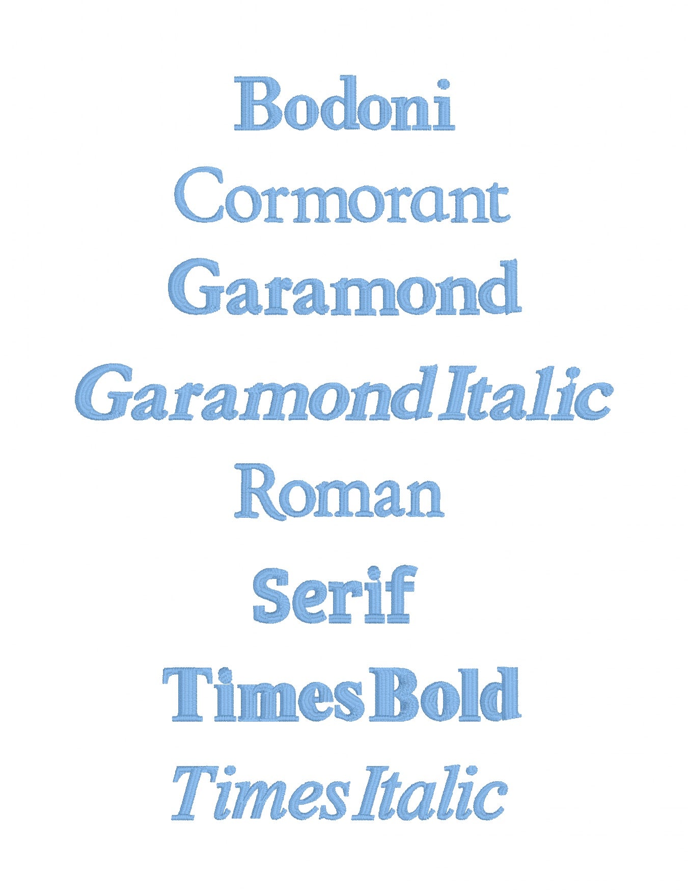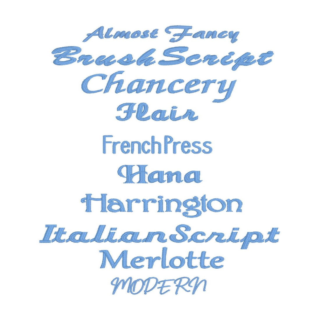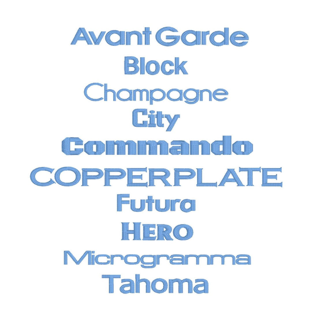 Choose from a variety of thread colors & fonts